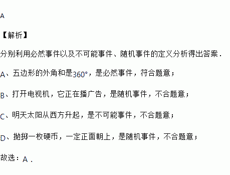 A. 五边形的外角和是 B. 打开电视机,它正在播广告