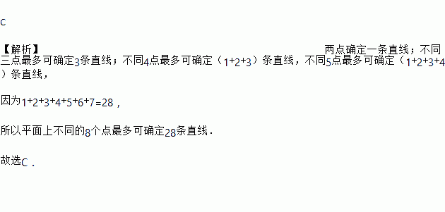 (3分)平面上不重合的两点确定一条直线,不同三点最多可确定3条直线,若平面上不同的n个点最多可确定28条直线,则n的值是( )