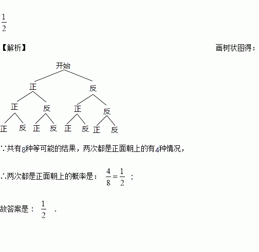 将一枚质地均匀的硬币连续掷三次,两次是正面朝上的概率是________.