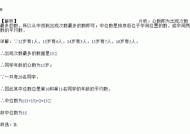 那么这20名同学年龄的众数和中位数分别是( )