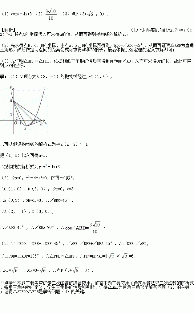 (3)点P在x轴正半轴上位于点D的右侧,如果∠APB=45°,求点P的坐标.