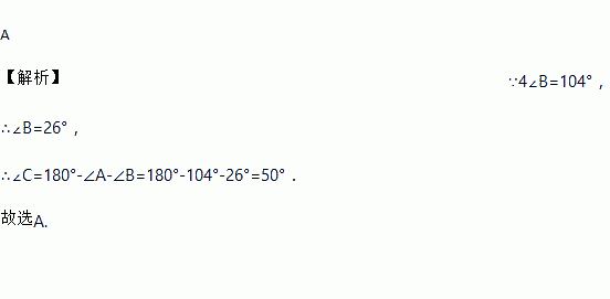 在△ABC中,已知∠A=4∠B=104°,则∠C的度数是( )