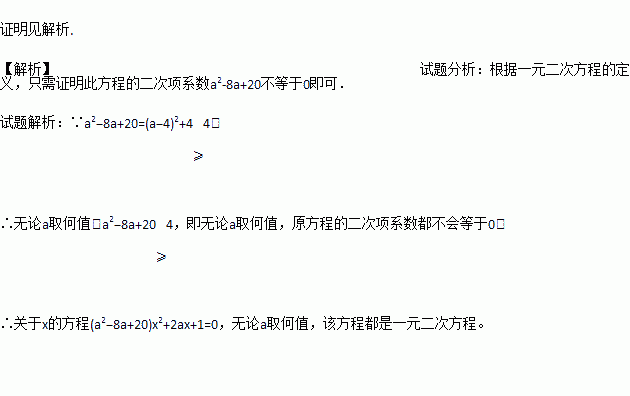 试说明关于的方程无论取何值,该方程都是一元二次方程.