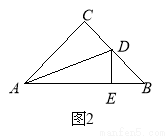 如图2,在等腰直角△ABC中,∠C=90°,AC=BC,AD平分∠BAC交BC于D,DE⊥AB于D,若AB=10,则△BDE的周长等于 .