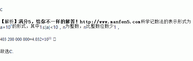 我国研制的“曙光3000服务器”,它的峰值计算速度达到403,200,000,000次/秒,用科学记数法可表示为( )
