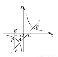 如图,在平面直角坐标中,直线与双曲线交于,两点,与轴交于点.若点是反比例函数图象上一点,过点作轴于点,延长交直线于点,求的值和的面积.