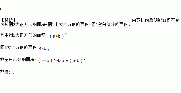 如图1,是一个长为2a宽为2b(a>b的长方形,用剪刀沿长方形的两条对角轴剪开,把它分成四个全等的小长方形,然后按图2拼成一个新的正方形,则中间空白部分的面积是( )