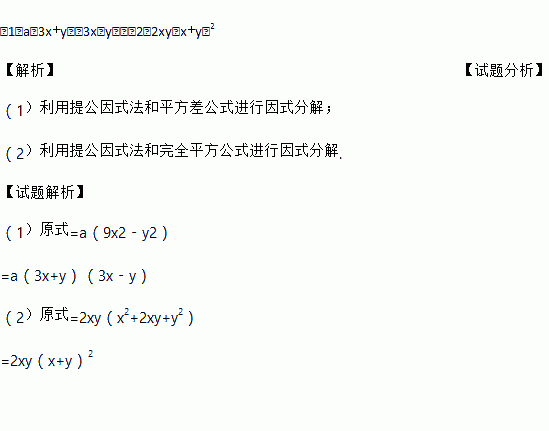 分解因式:(1)9ax2﹣ay2; (2)2x3y+4x2y2+2xy3.