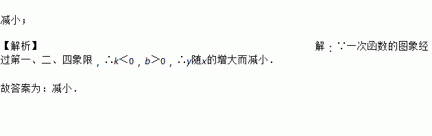 如果一次函数的图像经过第一、二、四象限,那么其函数值y随自变量x的值的增大而 .