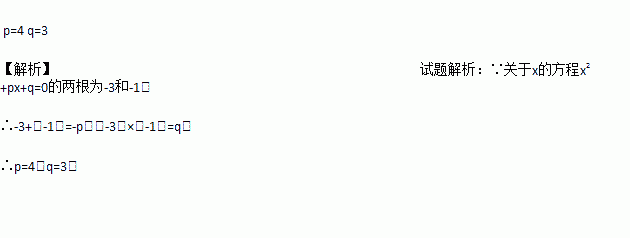 的两根为-3和-1,则p=__________;q=__________.