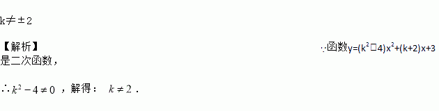 若函数y=(k2-4)x2+(k+2)x+3是二次函数,则k______.