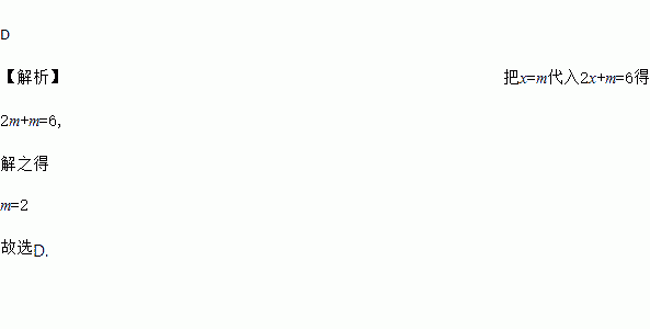已知x=m是关于x的方程2x+m=6的解,则m的值是( )