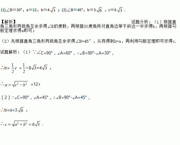 在△ABC中,∠C=90°,∠A,∠B,∠C所对的边分别为a,b,c.