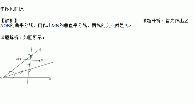 求作:点P,使点P到OA、OB的距离相等,且到点M与点N的距离也相等.(不写作法与证明,保留作图痕迹)