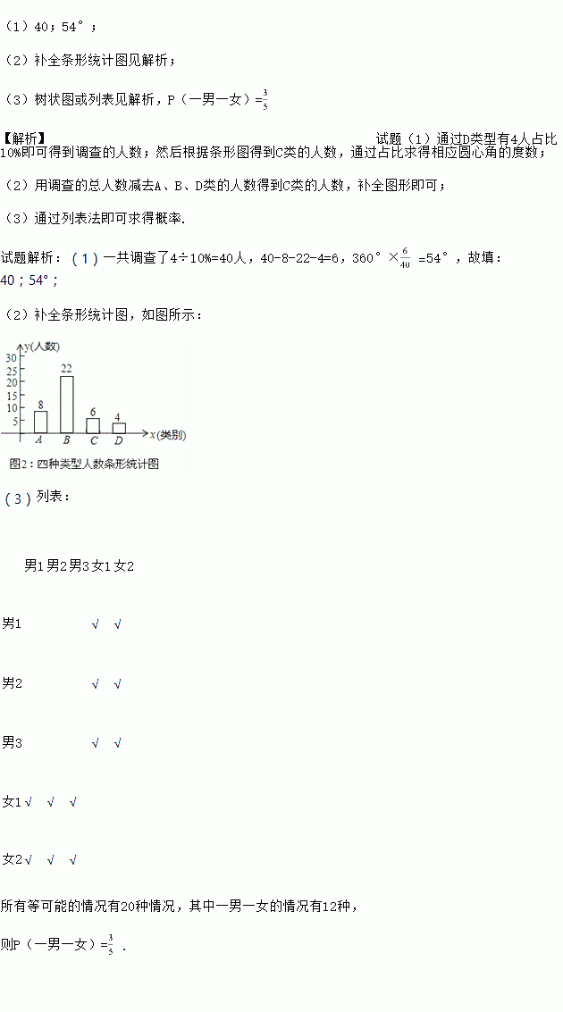 (3)在非常喜欢外教的5位同学(三男两女)中任意抽取两位同学作为交换生,请用列表法或画树状图求出恰好抽到一名男生和一名女生作为交换生的概率.