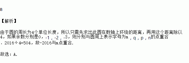 如图1,圆的周长为4个单位,在该圆的4等分点处分别标上字母m、n、p、q,如图2,先让圆周上表示m的点与数轴原点重合,再将数轴按逆时针方向环绕在该圆上,则数轴上表示-2019的点与圆周上重合的点对应的字母是( )