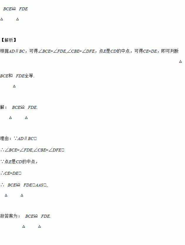 如图,AD∥BC,点E是CD 的中点,BE的延长线与AD的延长线交于点F.则△BCE和△FDE全等吗?为什么?