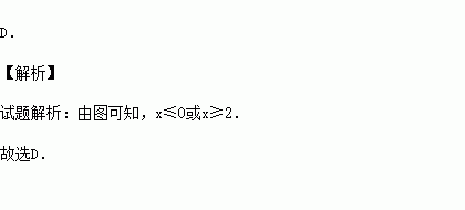 A.0≤x≤2 B.x≤0 C.x≥2 D.x≤0或x≥2