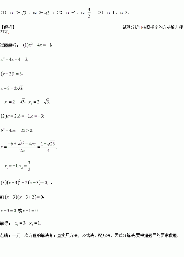 请用指定的方法解下列方程