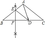 分析:(1)以点B为圆心,以AB长为半径画弧交BC于点D,再分别以B、D为圆心,以任意长为半径画弧,两弧在BC两边分别相交于,过两交点作直线,即为BD的中垂线,然后连接AD、DE;