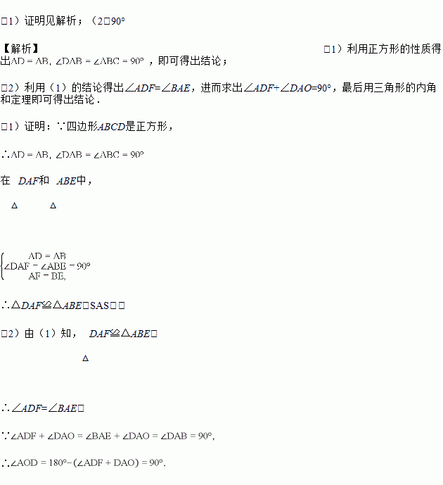 (1)求证:△DAF≌△ABE;