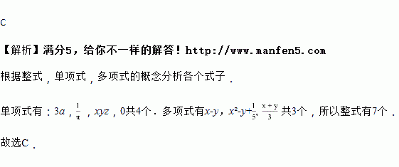 在代数式x-y,3a,x²-y+,,xyz,0,,中,有 ( )
