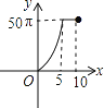 如图,正六边形的边长为10,分别以正六边形的顶点A、B、C、D、E、F为圆心,画6个全等的圆.若圆的半径为x,且0<x≤5,阴影部分的面积为y,能反映y与x之间函数关系的大致图形是( )