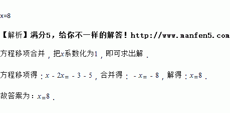 方程x+5=2x﹣3的解是________.
