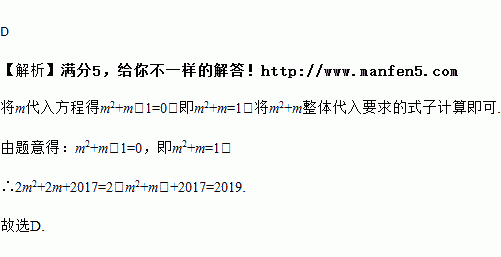 m是方程x2+x﹣1=0的根,则式子2m2+2m+2017的值为( )