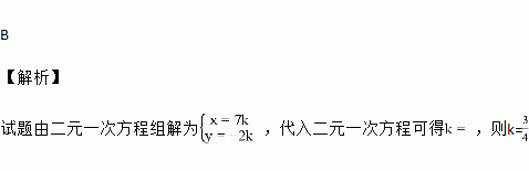 关于x、y的二元一次方程组 的解是二元一次方程的解,则k的值是( )