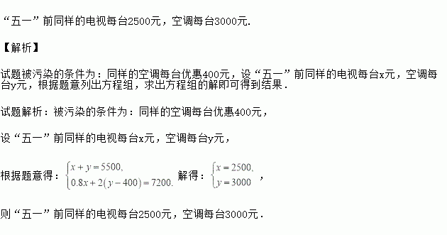 小明作业本中有一页被墨水污染了,已知他所列的方程组是正确的.写出题中被墨水污染的条件,并求解这道应用题.