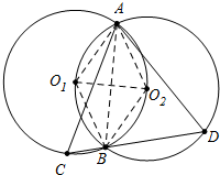 ∴∠ACD=$\frac{1}{2}$∠AO1B=60°,∠ADC=$\frac{1}{2}$∠AO2B=60°,