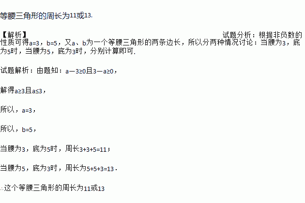 已知a,b为一个等腰三角形的两条边长,并满足b=2 + +5,求此等腰三角形的周长.