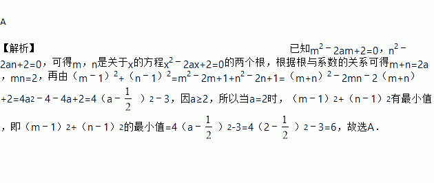 已知a≥2,m2﹣2am+2=0,n2﹣2an+2=0,m≠n,则(m﹣1)2+(n﹣1)2的最小值是( )