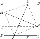 解答 解:连接QM,MP,PN,PQ,过N作NE⊥AB于E,过Q作QF⊥BC于F,