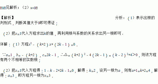 已知关于x的一元二次方程x2﹣(k+2)x+(2k﹣1)=0,