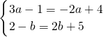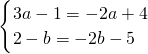 已知点A(3a-1,2-b),B(2a-4,2b+5).