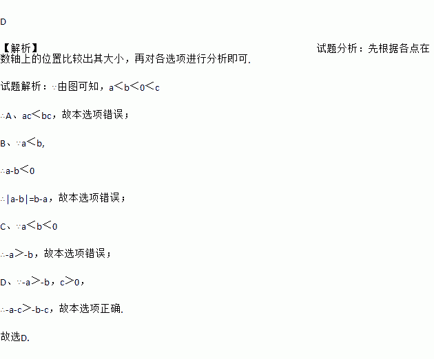 实数a,b,c在数轴上对应的点如下图所示,则下列式子中正确的是( )