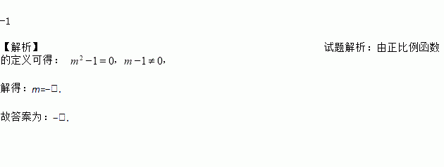 已知函数y=(m-1)x+m2-1是关于x的正比例函数,则m=_________.