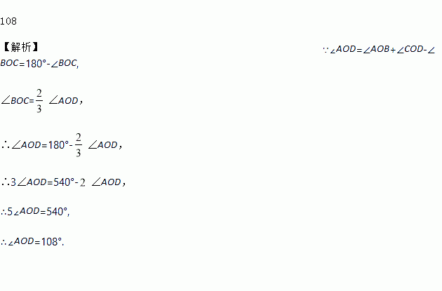 如图,将一副三角板的直角顶点重合,摆放在桌面上,若∠BOC=∠AOD,则∠AOD=____.