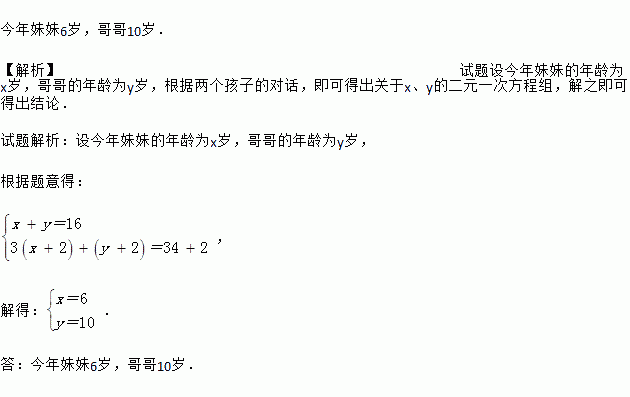 根据对话内容,请你用方程的知识帮记者求出哥哥和妹妹的年龄.