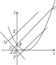 (3)过点O作BC的垂线交BC于点N,根据点A、B的坐标可知△AOB是等腰直角三角形,然后求出ON的长度,设点P所在的直线ME交y轴于点E,交BC的垂线于点M,然后根据相似三角形对应边成比例列式求出OE的长度,然后求出直线ME的解析式,与抛物线解析式联立求解即可得到点P的坐标,同理当点E在点B的下方时,求出直线的解析式,与抛物线解析式联立求解得到点P的坐标,从而得解.