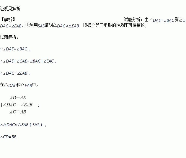 如图,AB=AC,AD=AE, 。求证:BE=CD.