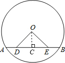 分析:过O作OC垂直于AB,垂足为C点,根据垂径定理得到C为AB的中点,可得AC=BC,又AD=BE,由DC=AC-AD,EC=BC-BE,利用等式的性质可得DC=EC,即OC垂直平分DE,利用线段垂直平分线的性质可得OD=OE.