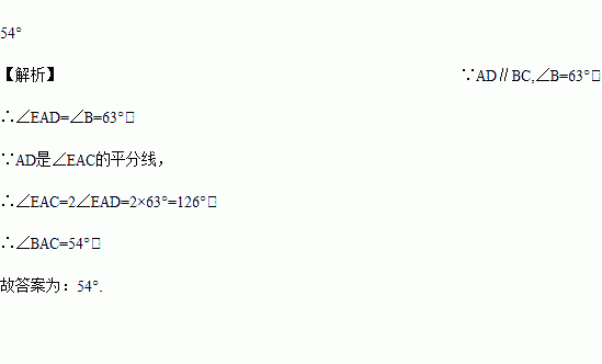 如图,∠CAE是△ABC的外角,且AD∥BC,AD平分∠EAC,若∠B=63°,则∠BAC=_____.