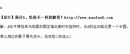 如图所示,灯在距地面3米的A处,现有一木棒2米长,当B处木棒绕其与地面的固定端点顺时针旋转到地面,其影子的变化规律是( )