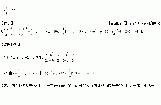 (1)当a=2,b=-1,c=3时,求代数式的值.