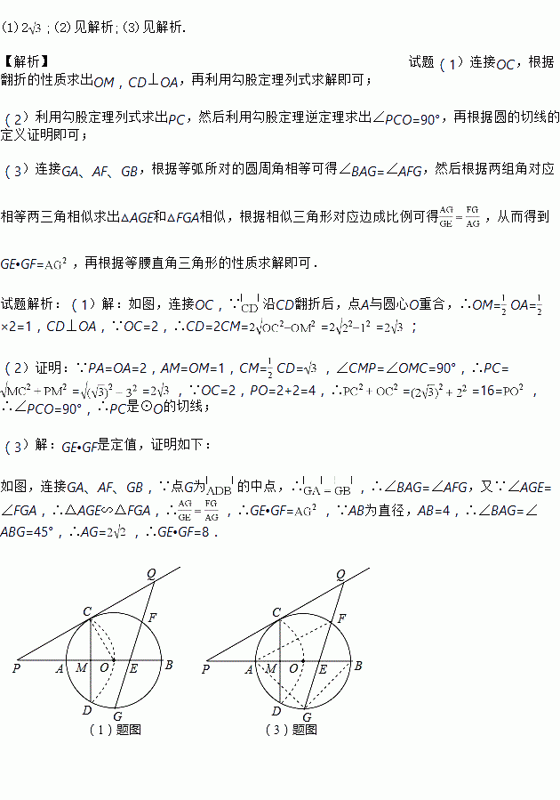 沿CD翻折后,点A与圆心O重合,延长OA至P,使AP=OA,连接PC