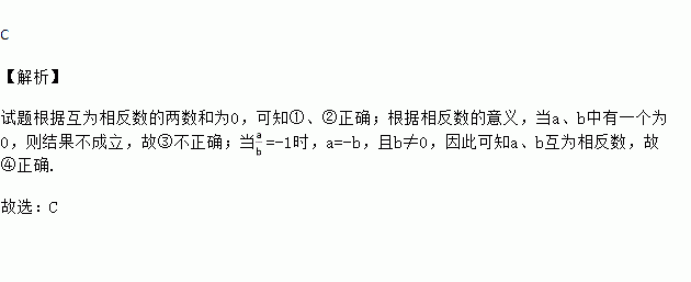 下列说法:①若a、b互为相反数,则a+b=0;②若a+b=0,则a、b互为相反数;③若a、b互为相反数,则