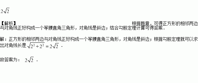 已知正方形的一条边长为2,则它的对角线长为_______.